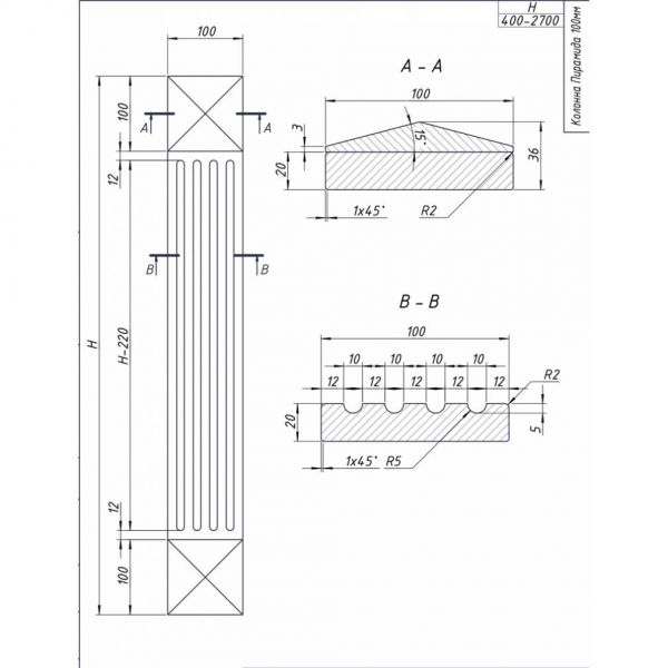 Цена указана для колонн высотой до 960 мм. Для высот: 961 - 1800 мм и 1801 - 2700 мм цена увеличивается на 10 и 20% соответственно
