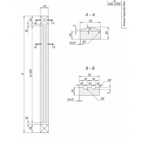 Цена указана для колонн высотой до 960 мм. Для высот: 961 - 1800 мм и 1801 - 2700 мм цена увеличивается на 10 и 20% соответственно
