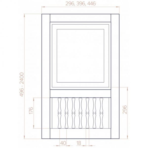 Комбинируется с филенкой и балясинами. Балясины h=176мм. Нижняя часть фасада имеет неизменную высоту. Увеличивается по высоте только верхняя часть.