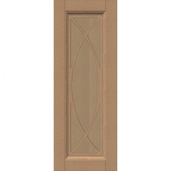 Вкладной переплет устанавливается на этапе сборки и является несъёмным элементом фасада. Монтаж стекла осуществляется с помощью деревянного штапика, который всегда поставляется вместе с фасадом уже зарезанный в размер под 45 градусов. Монтаж панели МДФ вместо стекла осуществляется без использования штапика.